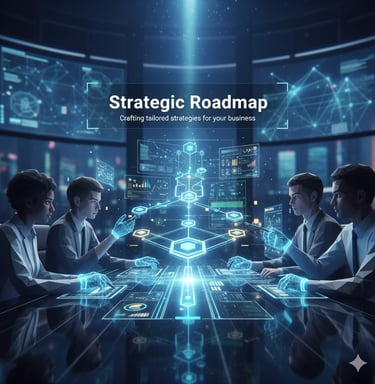 ما نقدمه: نصمم خطط تنفيذ مرنة ومُعدَّة خصيصاً لكم، تربط الأهداف التشغيلية بشكل مباشر بتقنيات استراتيجية، خاصة الذكاء الاصطناعي (AI) وإنترنت الأشياء (IoT).